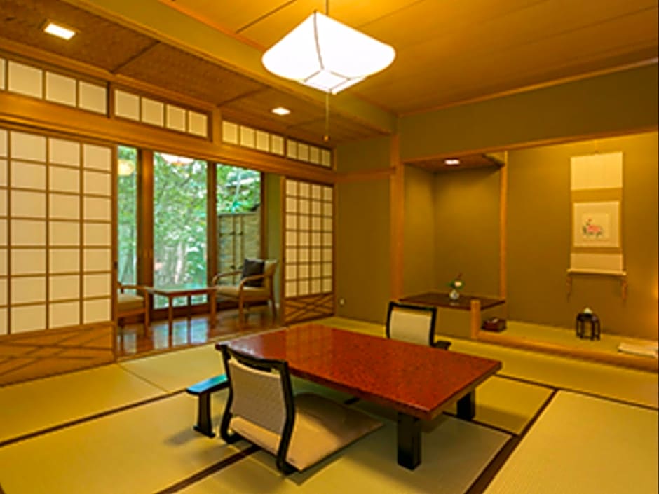 This air-conditioned room features a private hot spring bath, garden views, a tatami (woven-straw) floor and Japanese futon bedding. Comes with a flat-screen satellite TV, a safety deposit box, a fridge and an electric kettle. Includes an private bathroom with a toilet. Breakfast is served at the dining room, and dinner is served in a private dining room.
